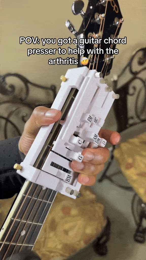 Press once → perfect chord. No buzzing. No missed strings. No pain.